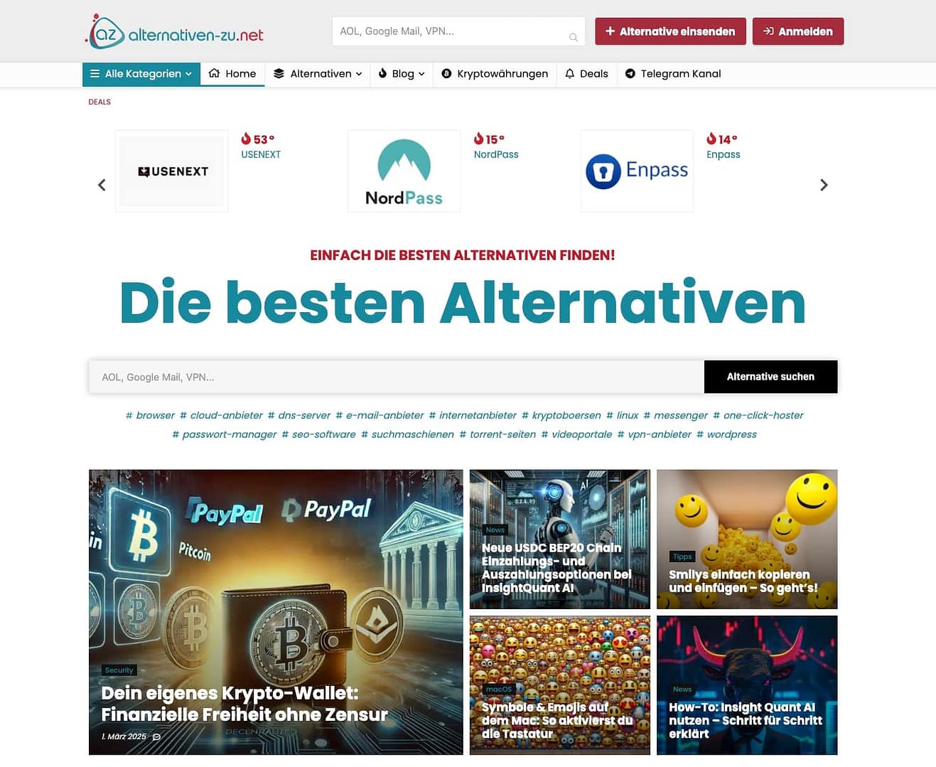 Alternativen-zu.net ist ein unabhängiges Vergleichsportal, das Nutzerinnen und Nutzern hilft, bessere Alternativen zu bekannten Online-Diensten, Softwarelösungen, Apps und Plattformen zu finden.